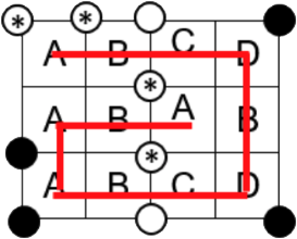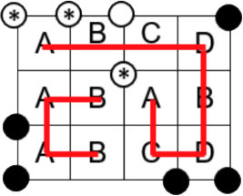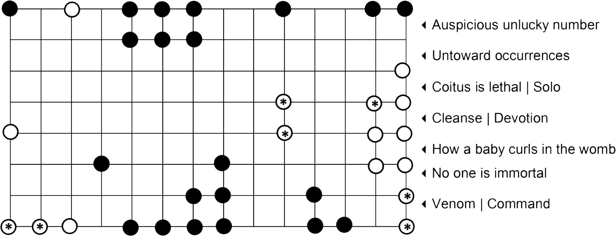 - Certain points within the bag are marked with black circles and white circles, based on particular properties of those points. A subset of white circles that fulfil an additional property are marked with an extra asterisk.